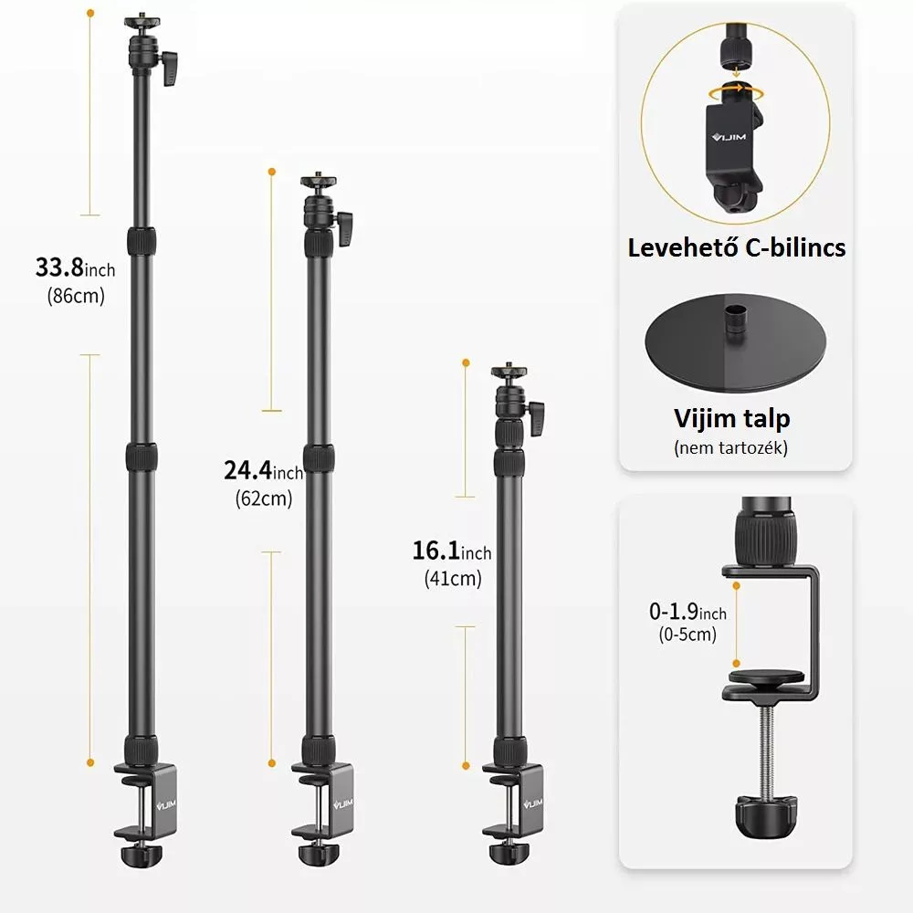 Ulanzi Vijim LS11 multifunkciós, asztalra rögzíthető +1karos állvány rendszer Black