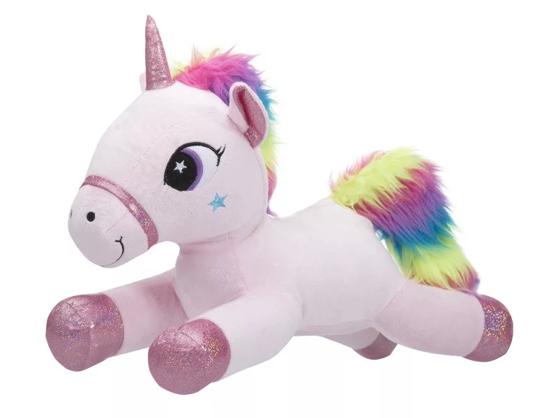 Unikornis fekvő plüssfigura - szivárvány, 40 cm