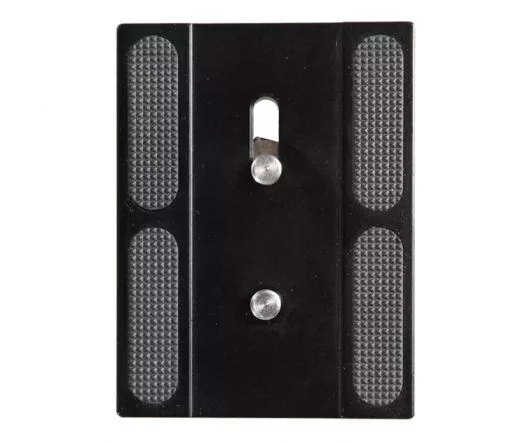 Gyorscseretalp 1/4"-es kameracsavarral és rögzítőtüskével. Jól használható Vanguard panoráma- és gömbfejekkel