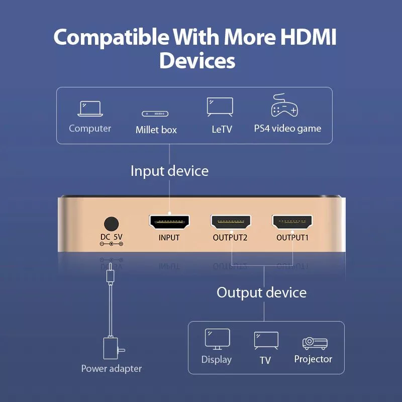 Vention 1 In 2 Out HDMI Splitter 4K@30Hz Gold Aluminum Alloy Type