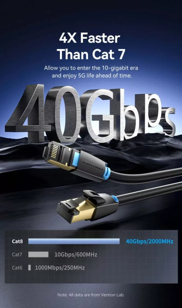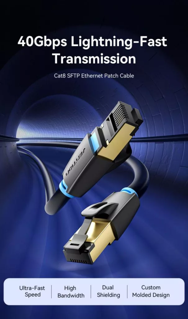 Akár távolról dolgozik, akár online tanul, vagy egyszerűen csak szórakozásra használja az internetet, a Vention kábel megfelel az Ön igényeinek. A 40 Gbps átviteli sebességnek köszönhetően nagyméretű fájlokat továbbíthat, tartalmakat streamelhet a legmagasabb minőségben, és késedelem nélkül játszhat online. A 2000 MHz-es átviteli sávszélesség páratlan jelstabilitást biztosít, kiküszöböli az interferenciát, és biztosítja a hálózat zavartalan működését.