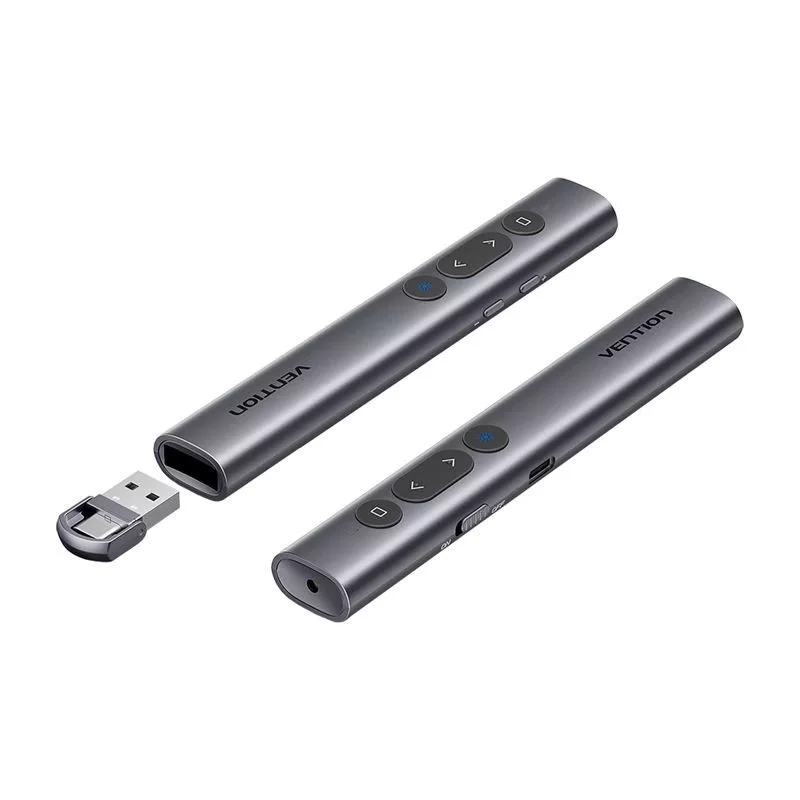 A Vention vezeték nélküli mutatója 3R-osztályú zöld lézert használ, amely a hagyományos vörös lézerekhez képest jobb láthatóságot biztosít a LED-képernyőkön. Az akár 100 méteres hatótávolság lehetővé teszi, hogy szabadon mozoghasson a szobában, a távirányító funkció pedig 50 méteres körzetben működik, teljes 360°-os hatótávolsággal. A 2,4 GHz-es átviteli technológia stabil kapcsolatot biztosít késedelem nélkül, akár falakon keresztül is. A készülék nem igényel illesztőprogramokat - csak csatlakoztassa az USB-A/USB-C vevőegységet, ami gyors indítást tesz lehetővé a legtöbb laptopon.