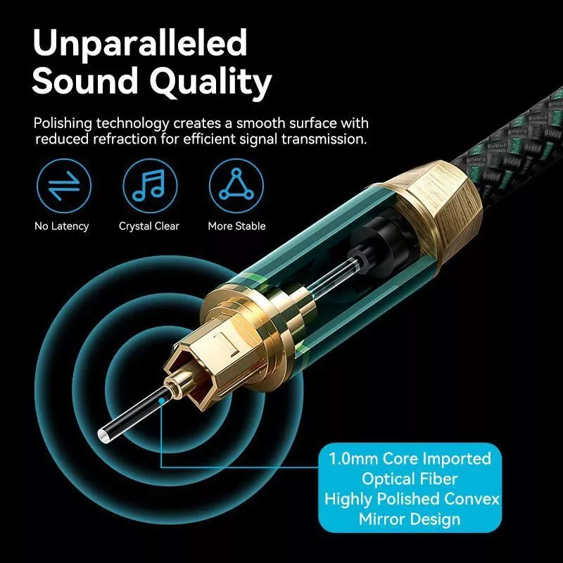 Audio kábel, Toslink, Toslink, Male/Male, 3m, Green, Szövetborítás