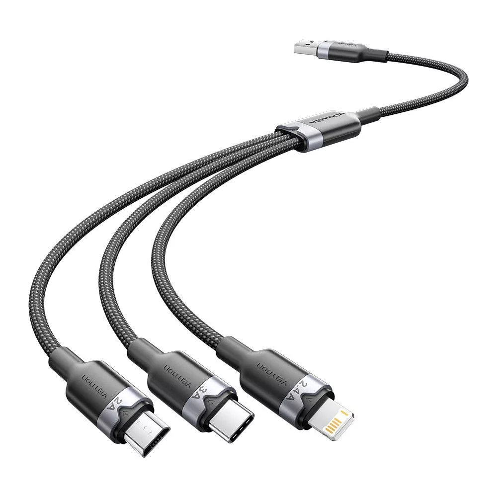 Vention USB 2.0 A to USB-C/Lightning/Micro USB-B Cable 1,5m Black