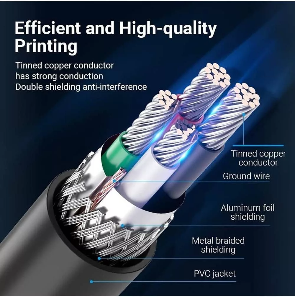 A Vention COQBF USB 2.0 A-B kábel, 2 m hosszúságú, fekete színű, elengedhetetlen kiegészítő nyomtatók, faxok, szkennerek és multifunkciós eszközök számítógéphez való csatlakoztatásához. Tartós anyagokból készült, hajlításnak ellenálló kábel, amely hosszabb élettartamot és problémamentes használatot biztosít. Ezenkívül a kábel akár 480 Mbps adatátviteli sebességet és 2 A névleges áramerősséget biztosít, garantálva a hatékony és stabil kommunikációt az eszközök között. A kábel élettartama 3000 csatlakoztatás és eltávolítás, ami bizonyítja erősségét és tartósságát.