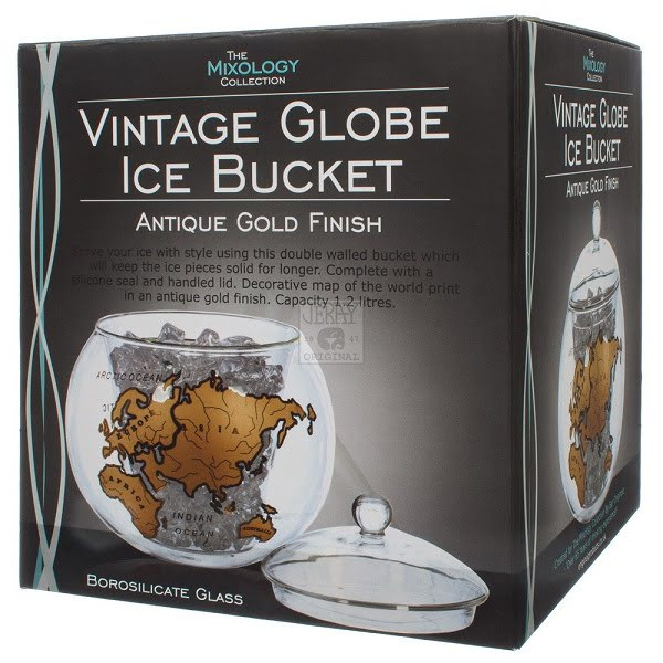 Vintage földgömb formájú jégtartó vödör.Anyag: duplafalú üvegMéret: 1,2 literMikor beköszönt a nyári meleg, akkor mindent megteszünk annak érdekében, hogy az italainkat kellően hidegen tartsuk! Na, ehhez lesz szuper választás ez a vintage földgömb formájú vödör, melyben tárolhatod a jeget a következő bulin!Dizájnos megjelenésével garantáltan színt visz a dekorációba!
