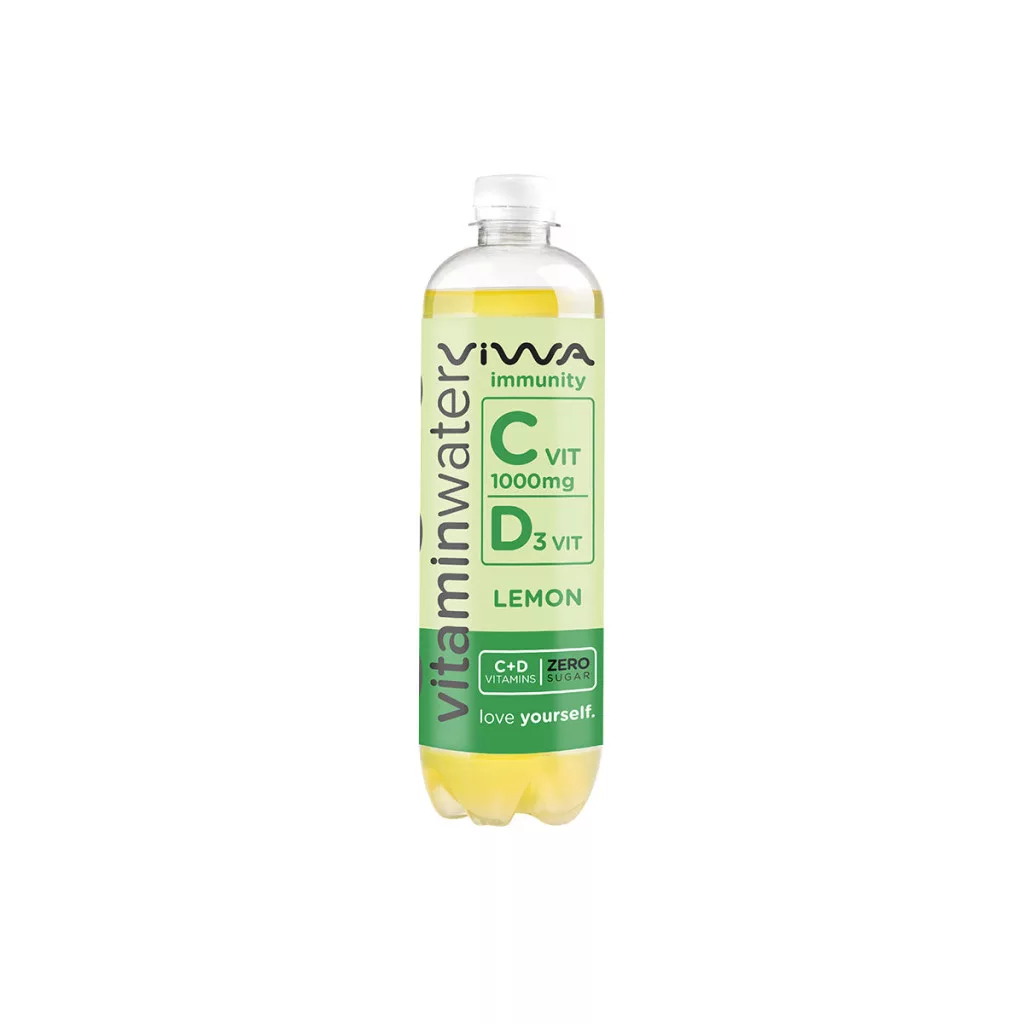 A Viwa Immunity C-1000 ZERO felfrissít és fokozza szervezetünk védekezőképességét. Citrom ízű, energia- és szénsavmentes üdítőital hozzáadott vitaminokkal és steviával.Összetevők: ásványvíz, citromlé 1,4% (sűrítményből), vitaminok (C, D3), étkezési sav (citromsav), savanyúságot szabályozó anyag (nátrium-citrátok), aroma, tartósítószerek (K-szorbát, Na-benzoát), sáfrány kivonat, stabilizátorok (gumiarábikum, fagyanta glicerin-észterei), antioxidánsok (tokoferolban gazdag kivonat, aszkorbinsav zsírsav-észterei), természetes színezék (karotinok), édesítőszer (szteviol glikozidok)Átlagos tápérték 100g termékben:Energia: 5kj/1kcalZsír: 0g Amelyből telített zsírsavak: 0g Szénhidrát: 0,1 g Amelyből cukrok: 0,1 g Fehérje: <0,06g Rost: <0,01g Só: <0,01g