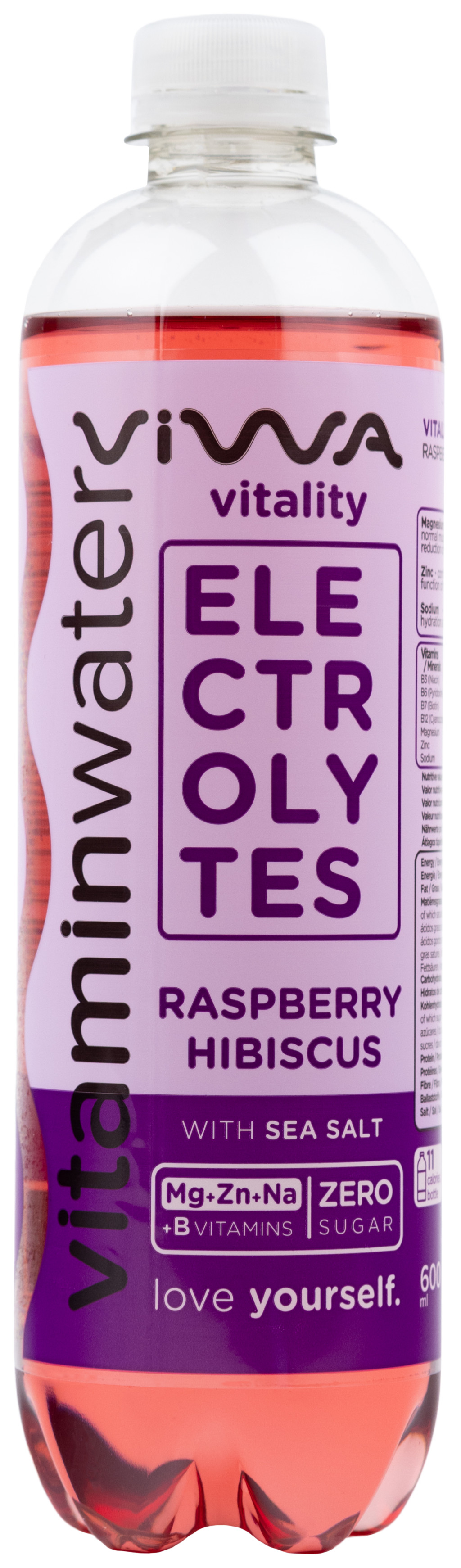 Málna-hibiszkusz ízű, energia- és szénsavmentes üdítőital hozzáadott vitaminokkal, ásványi anyagokkal és édesítőszerekkel.