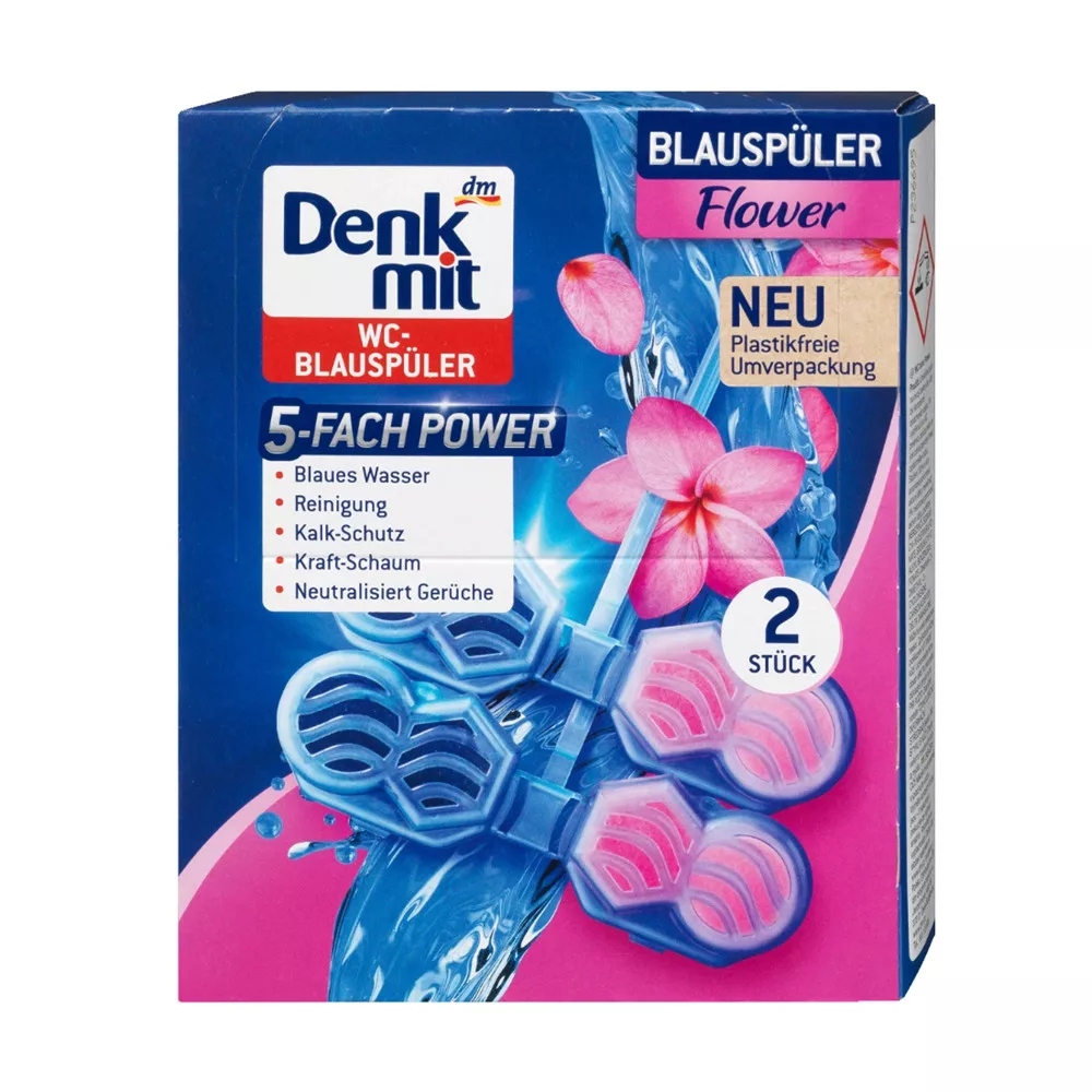 A kék vízszínezővel ellátott, kellemesen virágillatú Denkmit WC-tisztító és -illatosító rúd higiénikus tisztaságot és frissességet biztosít minden öblítéskor. Véd a vízkőlerakódás ellen és semlegesíti a kellemetlen szagokat. Kékre színezi az öblítővizet és virágos illatot áraszt magából minden öblítésnél.