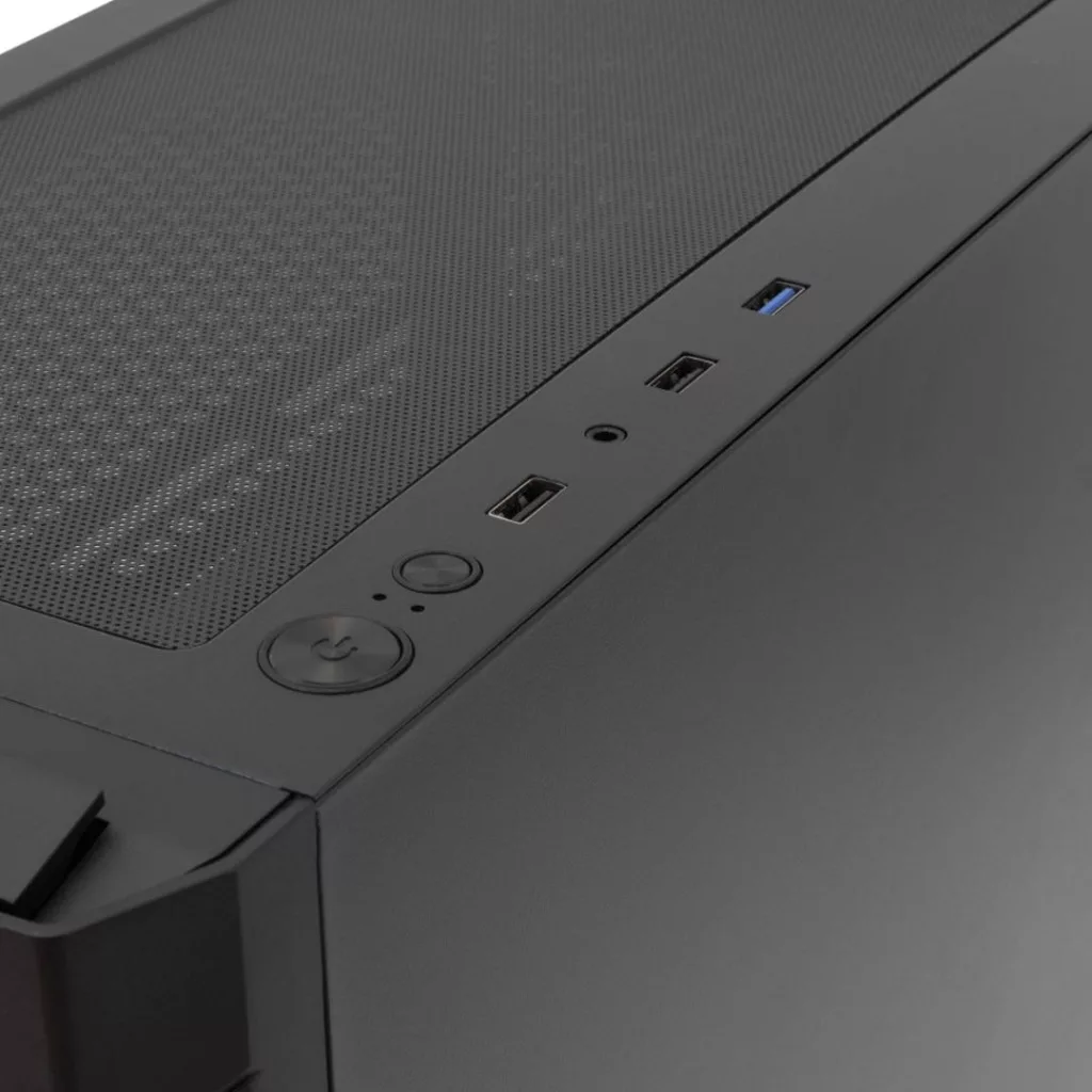 ATX, Black, 2x3,5", 2x2,5", 2xUSB2.0, 1xUSB3.0, Audio, Táp nélkül, 390x200x440mm, Tempered glass window