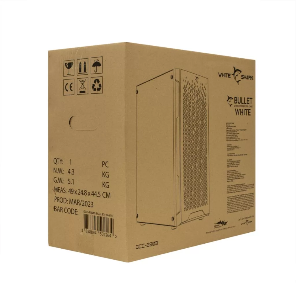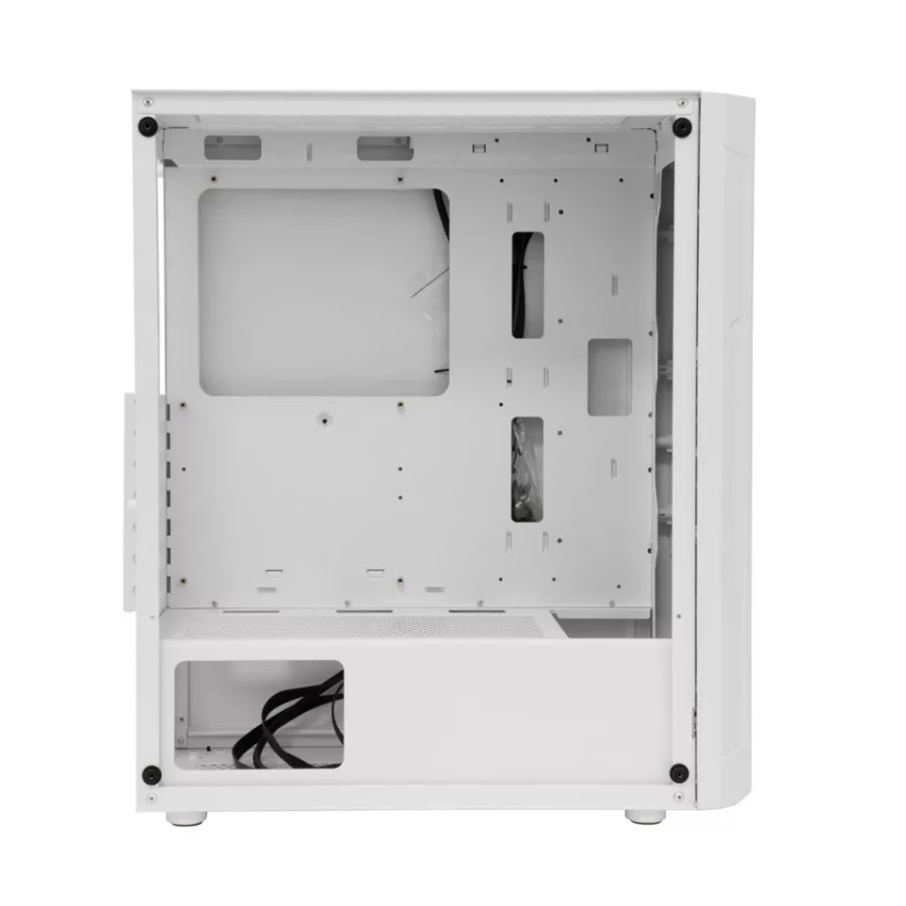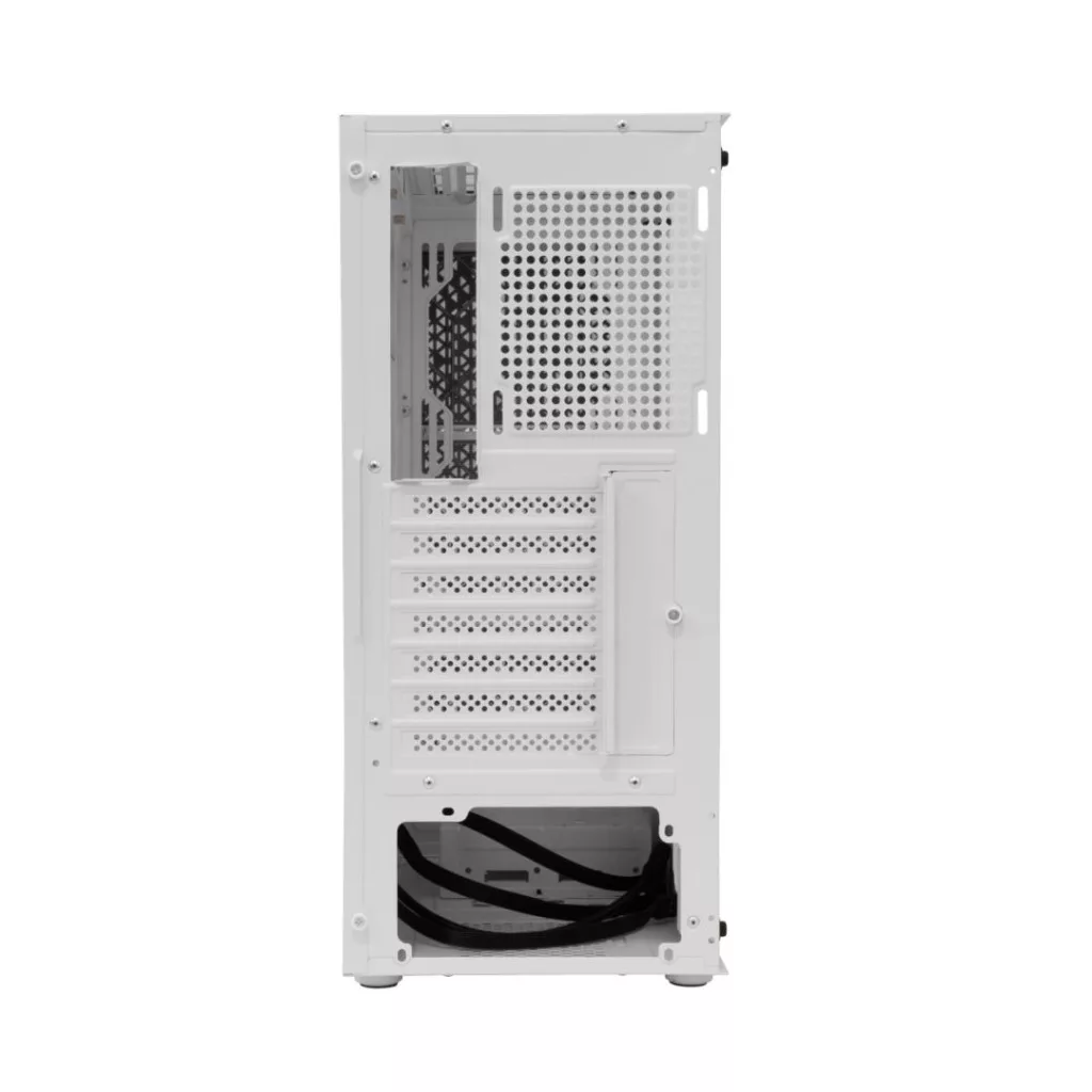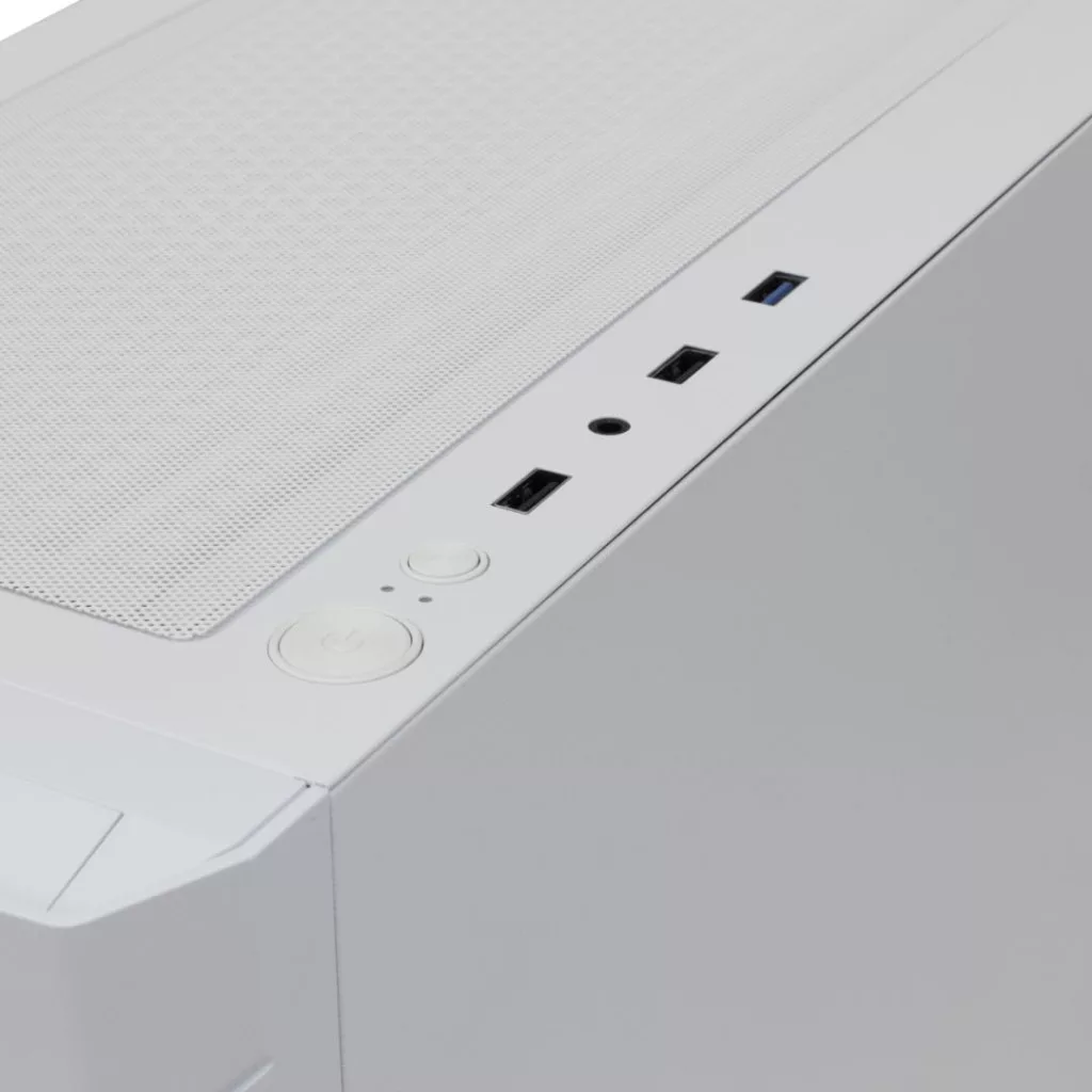ATX, White, 2x3,5", 2x2,5", 2xUSB2.0, 1xUSB3.0, Audio, Táp nélkül, 390x200x440mm, Tempered glass window