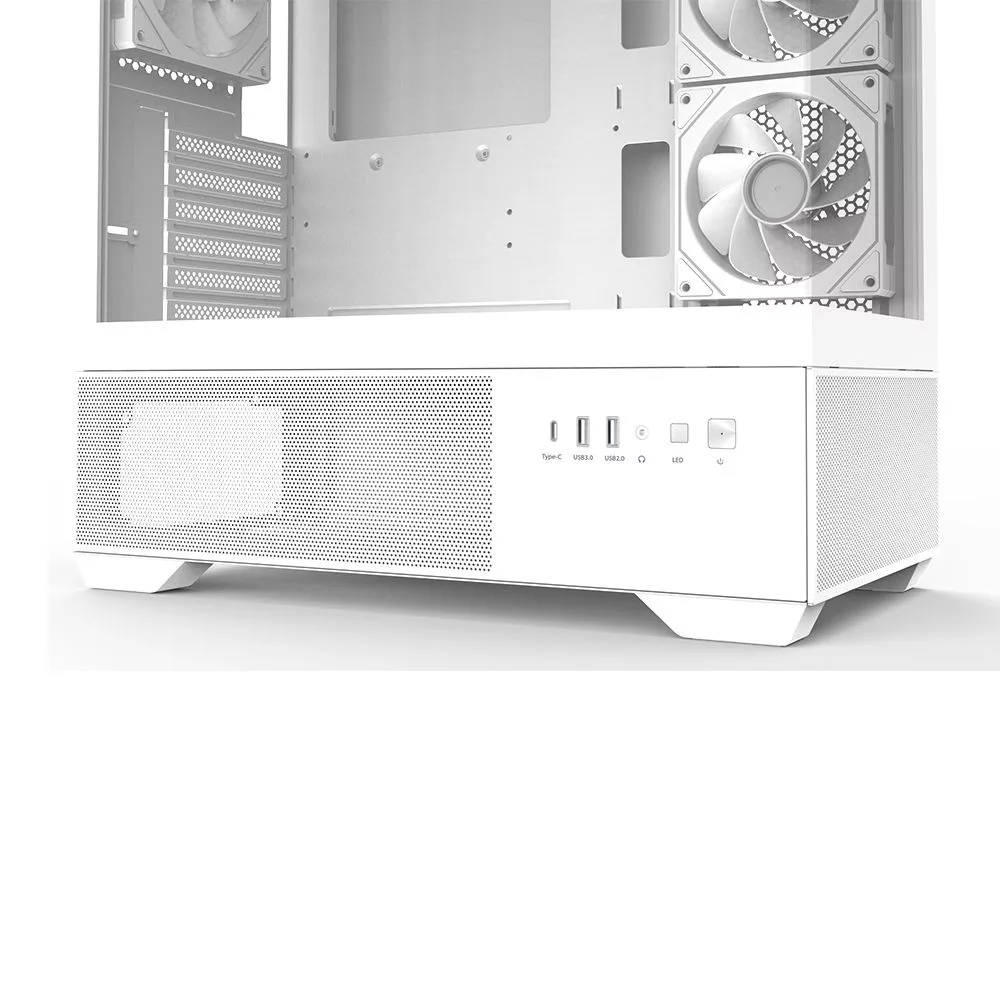 ATX, White, 2x3,5", 2x2,5", 1xUSB2.0, 1xUSB3.0, 1xUSB Type-C, Audio, Táp nélkül, 487x436x215mm, Ventilátor:3x12cm, Tempered glass window, RGB, Gamer