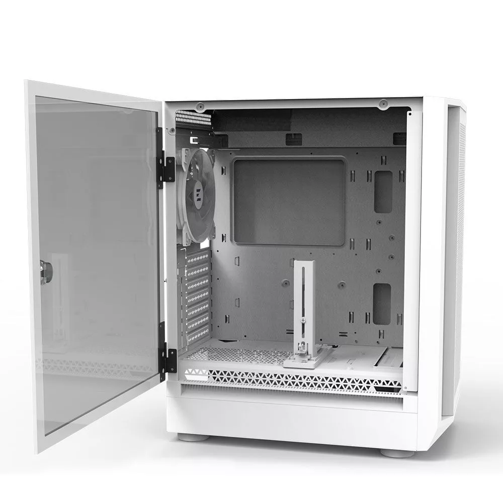 E-ATX, White, 2x3,5", 3x2,5", 1xUSB2.0, 1xUSB3.0, 1xUSB Type-C, Audio, Táp nélkül, 420x230x475mm, Ventilátor:4x14cm, Tempered glass window, RGB, Gamer