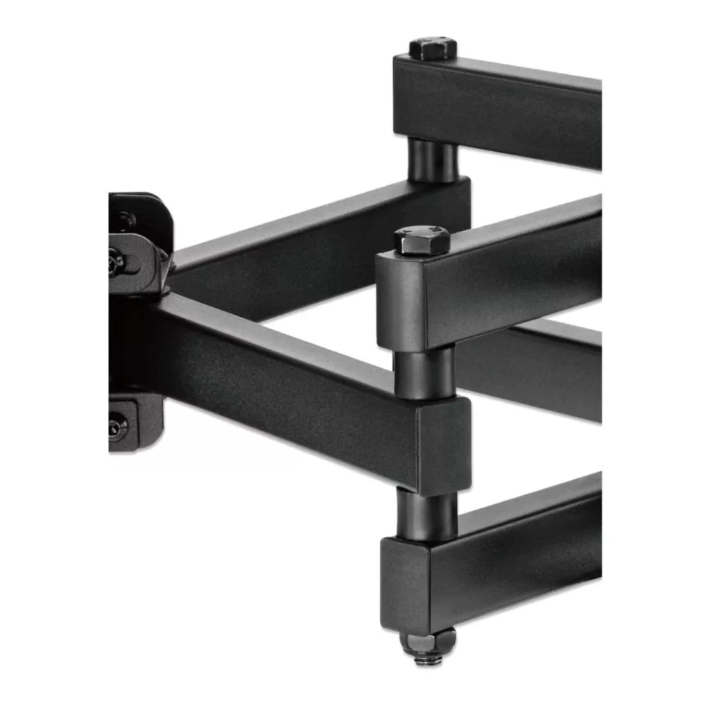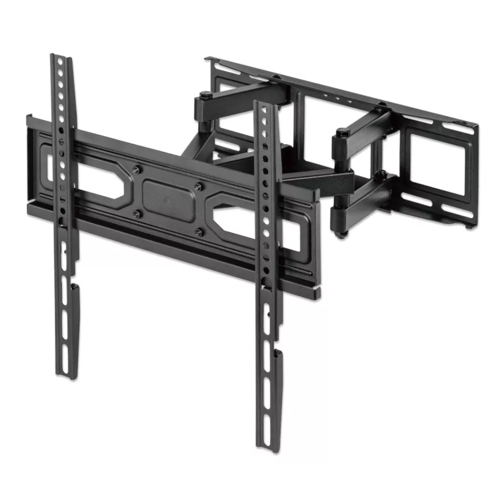 Ez az erős, teljes mozgást biztosító manhattani TV fali konzol biztonságosan tartja TV-jét két csuklókaron, és optimalizált kilátást biztosít +3 és -15° közötti dőlésszöggel és +/-60° elforgatással. Akár 70"-es, 40 kg-os (88 font) VESA-kompatibilis, akár 400x400-as felbontású lapos és hajlított LCD-, OLED- vagy plazma TV-khez is illeszkedik. A mellékelt tartozékkal készen áll a magabiztos padló feletti telepítésre. buborékszint és +/-3°-os utólagos szintezési beállítás, amely segít a tartó tökéletesen vízszintes rögzítésében a falon. Ez a tartó ideális lakossági, irodai, vendéglátói, tantermi, konferenciatermi, digitális feliratozási és egyéb kereskedelmi alkalmazásokhoz. Bárhová is telepíti , az univerzális Manhattan Full-Motion TV fali konzol a legjobb tévénézési élményt helyezi előtérbe és középre.
