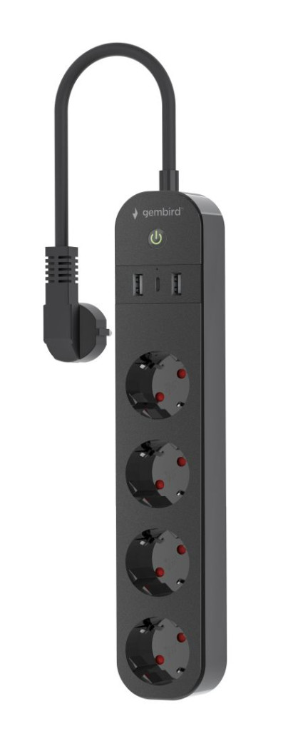 Gembird Smart power strip with USB charger 4 sockets Black
