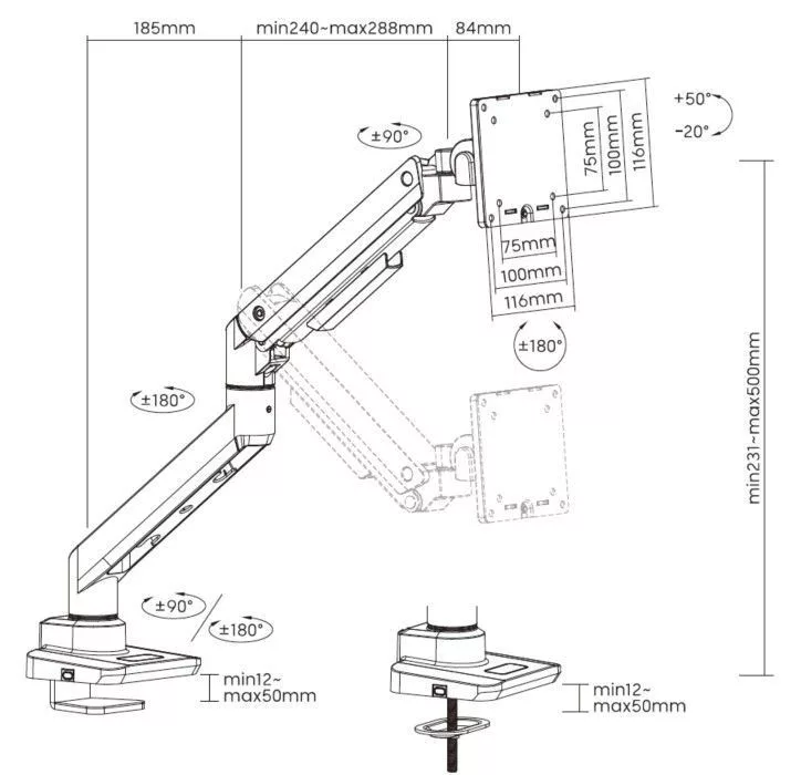 A strapabíró konstrukcióval rendelkező, nagy teherbírású asztali tartó stabil és biztonságos tartást biztosít a különböző súlyú monitorok számára. Az állítható kialakítás sokoldalú pozícionálást tesz lehetővé, így számos professzionális és kreatív feladatra alkalmas. Akár tervező, videoszerkesztő vagy lelkes játékos, ez a tartó rugalmasan rendezheti és igazíthatja nagyobb monitorait.
