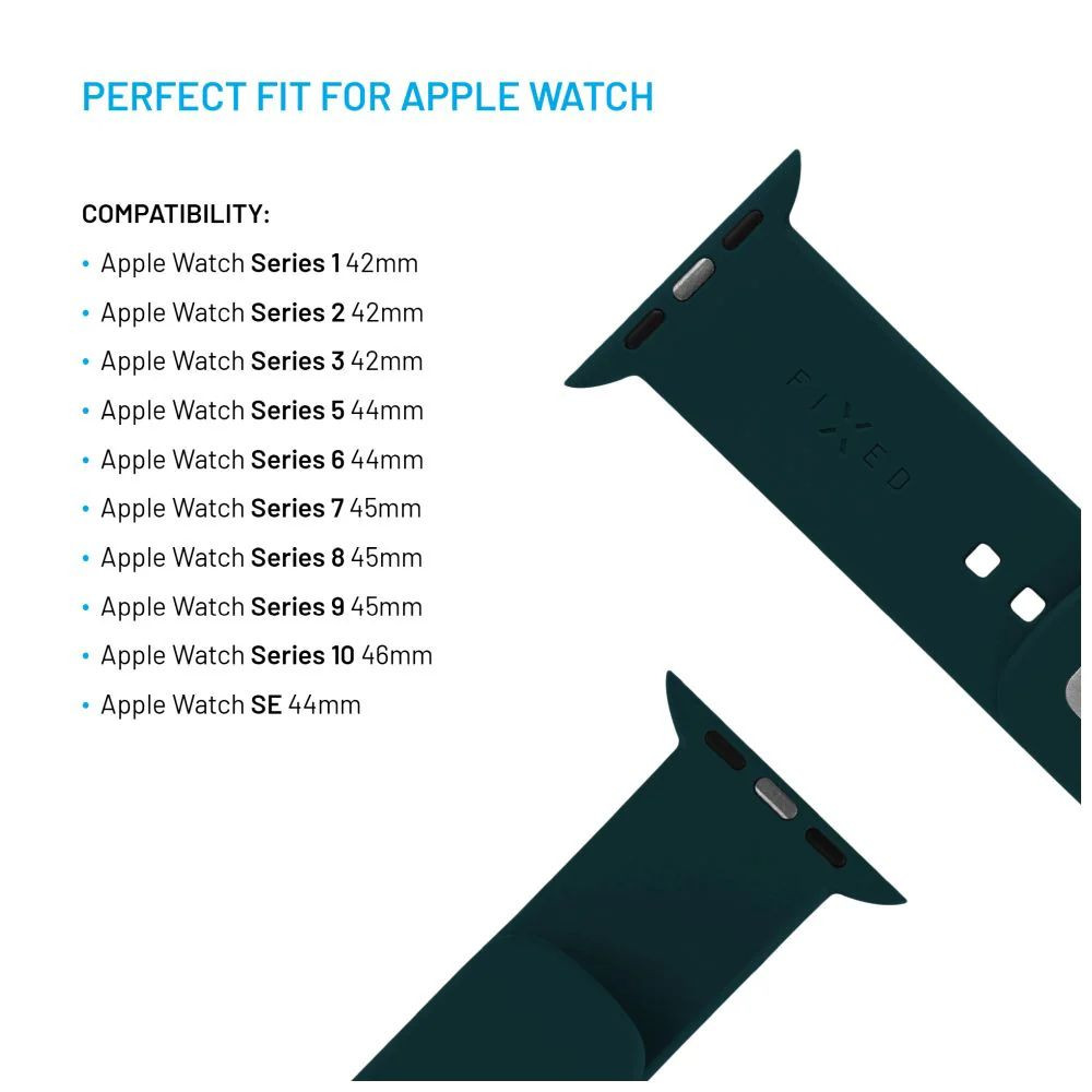 A puha szilikonból készült FIXED szilikon sportos szíj feldobja órája megjelenését. A kiváló minőségű szilikon anyag ellenáll az izzadságnak, a víznek és a mechanikai sérüléseknek, és könnyen tisztítható. A szilikon kellemes tapintású és csökkenti az allergiás bőrreakciókat. A szíj kialakítása kényelmes viseletet garantál mind szabadidőben, mind sportolás közben. A gyorskioldó rendszernek köszönhetően a szíjak könnyen cserélhetők, és az óra kinézete az alkalomhoz igazítható. A csomag kétféle méretű szíjat tartalmaz, amelyek a különböző csuklókörméretekhez igazíthatóak. A FIXED szilikon sportos szíj kompatibilis az Apple Watch 42mm, 44mm és 45mm-es összes generációjával.