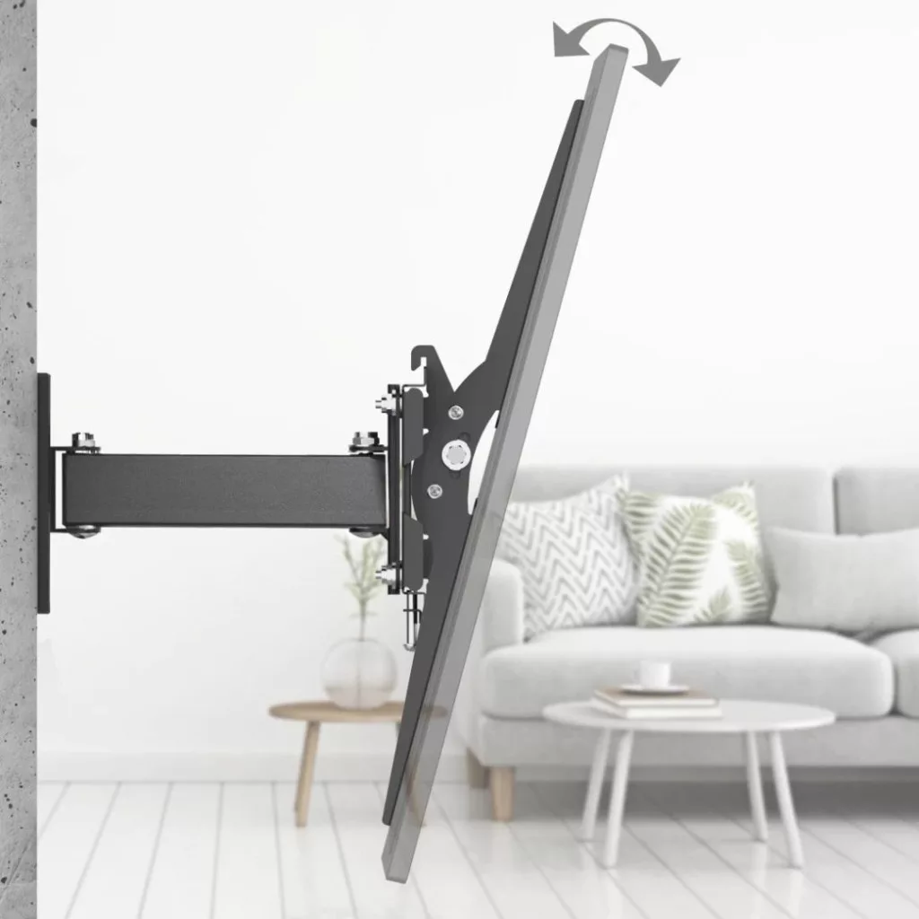 Ha a TV-konzol kissé ferdén lett a falra szerelve, a TV pozíciója vízszintesen néhány fokkal korrigálható.