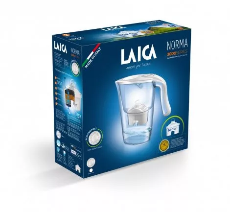 LAICA CARMEN Norma fehér vízszűrő kancsó mechanikus kijelzővel és 1 db bi-flux univerzális szűrőbetéttel