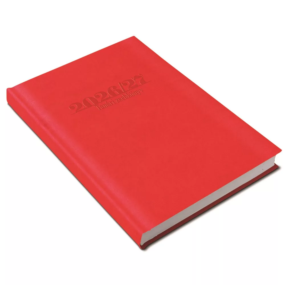 TANÁRI HATÁRIDŐNAPLÓ A5, MŰBŐR 150MMX210MM, FEHÉR LAPOKKAL PIROS 2026/2027 REALSYSTEM