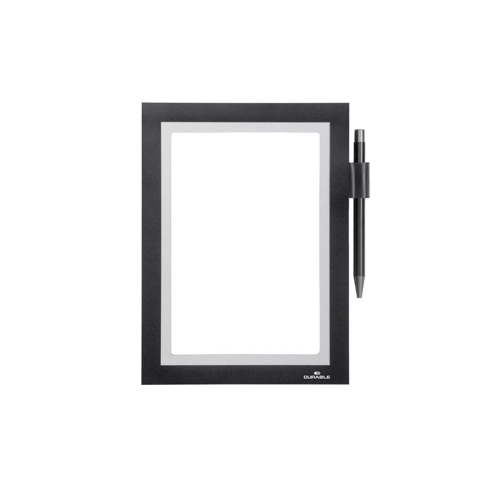 Információ kihelyezés tökéletesen. DURAFRAME® NOTE az öntapadó infokeret tolltartóval ideális megoldás olyan dokumentumok, jegyzetek kihelyezésére, melyekre közvetlenül szeretnék írni. • Információ kihelyezés professzionális módon • A dokumentumok gyors kihelyezése és cseréje a mágneses keretnek köszönhetően • Könnyen rögzíthető bármilyen sima felületen, üvegről el is távolítható • Felhasználási területek: takarítási napló kihelyezésére, regisztrációs ívek kihelyezésére, információk gyűjtésére és dokumentálására, munkafolyamatok és szervíz, karbantartás, vagy biztonsági ellenőrzések rögzítésére • A keretben kihelyezet lapokra közvetlenül lehet jegyzetelni • 5 lap helyezhető ki benne (80 g/nm) • Univerzális tolltartó • A keret mindkét oldalról látszik • Álló és fekvő formátumban is használható *korlátozott felelőség Katalóguskód: 24805