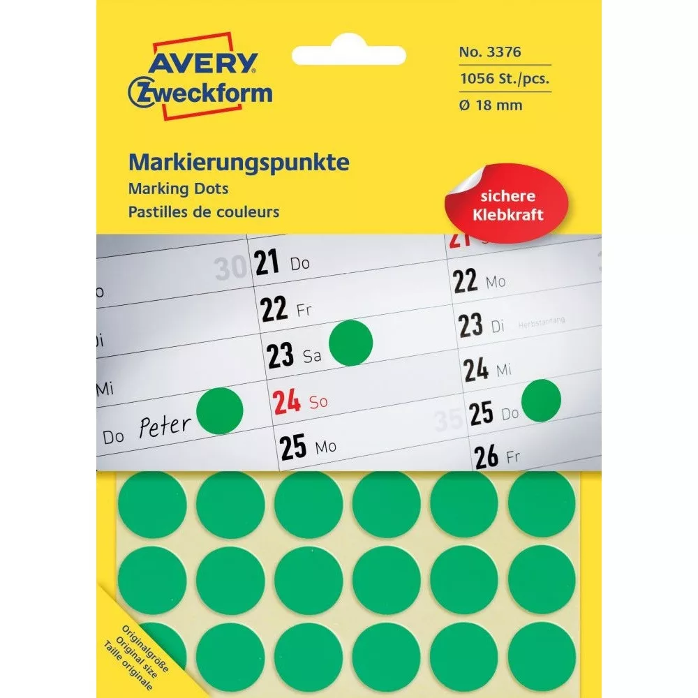 Etikett címke, o18mm, jelölésre, 24 címke/ív, 44 ív/doboz, Avery zöld