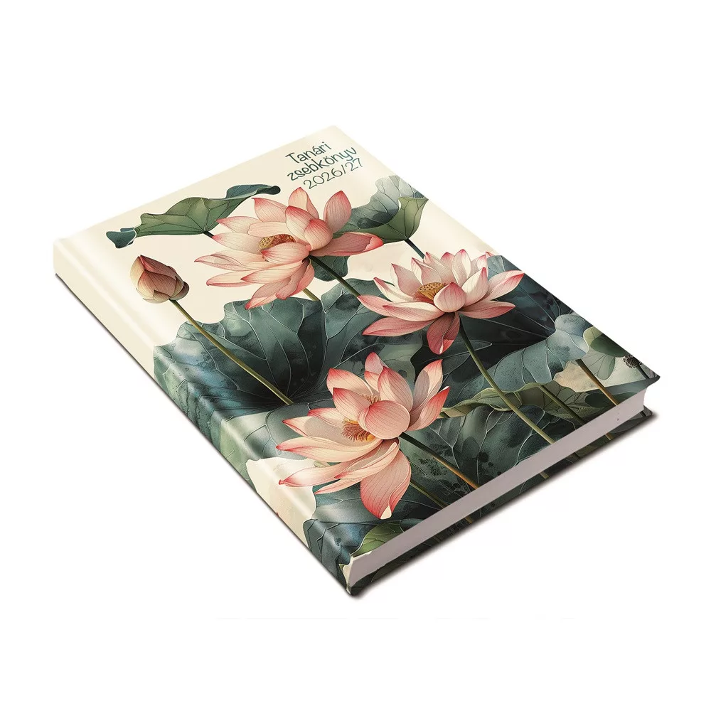 TANÁRI HATÁRIDŐNAPLÓ A5, MŰBŐR 150MMX210MM, FEHÉR LAPOKKAL LÓTUSZ 2026/2027 REALSYSTEM