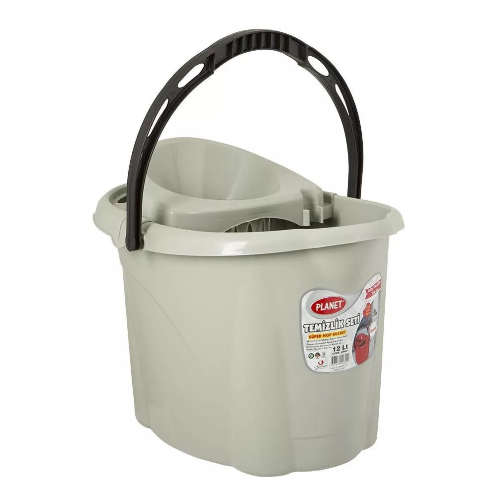 FELMOSÓ VÖDÖR 12 LITERES MŰANYAG KICSAVARÓ KOSÁRRAL SZÜRKE_UP601-002